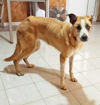 Olimpia wurde endlich abgeholt. Sie hat in den letzten Jahren ein furchtbares Leben gehabt. Viel schlimmer als wir erwartet hatten. Olimpia musste seit drei Jahren bei ihrer vergangenen Familie in einem Zwinger auf dem Balkon liegen und konnte ihre Geschäfte nur dort verrichten. Einmal täglich durfte sie Gassi gehen. Sie war jahrelang isoliert und fristete ein schrecklich einsames Dasein. Auf den Bildern erkennt man gut, dass sie sich aufgegeben hat. Derzeit lebt sie bei Tina im Großrudel und hat mit keinem Hund ein Problem. Sie ist wahrscheinlich eine Mischung aus einem Schäferhund-Husky und Windhund/Galgo. Sie ist mit Abstand einer der liebenswertesten und schönsten Hündinnen, die Tina jemals bei sich zu Hause hatte. Ihre Augen spiegeln ihre Traurigkeit und Einsamkeit wider. Olimpia ist sensibel, sanftmütig und derzeit noch schüchtern. Ihr Körper hat so lange nichts Gutes zu Fressen bekommen, dass dieser sich wahrscheinlich angepasst hat.