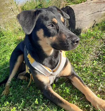 Ortensia, weiblich, kastriert, Deutscher Pinscher Mischling, ca. 45cm, ca. 16kg, geboren am 28.10.2024, ist eine unsichere Hündin im Haus, die sich Sicherheit bei ihrer Hundefreundin auf der Pflegstelle holt. Bei den Spaziergängen ist sie eine souveräne und gut leinenführige Hündin, die es genießt Spaziergänge zu unternehmen. Ortensia ist bestens sozialisiert mit ihren Artgenossen und eine sehr liebenswerte und anlehnungsbedürftige Hündin.