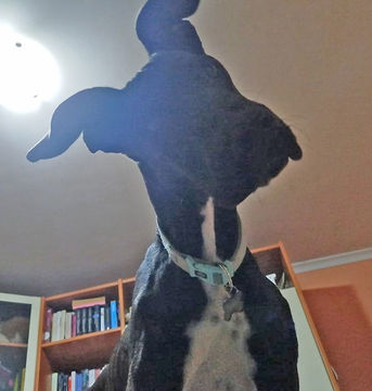 Wieviel Dogge und wieviel andere Rassen in ihm stecken, wissen wir nicht, aber er wird noch um einiges wachsen und mal ein ganz Großer werden! In ihm steckt ganz bestimmt auch Känguru, da er ständig so hoch hüpft und springt.
