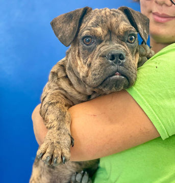 Thai wurde von einem Vermehrer beschlagnahmt, da dort die Unterbringung so schlimm war. Er lebt nun auf einem Hof zusammen mit vielen anderen Hunden, Katzen und Hängebauchschweinen. Er ist ein kleiner lustiger Bulli, der seinen eigenen Kopf hat. Er ist völlig problemlos im Umgang mit Artgenossen, großen sowie kleinen Menschen, geht gut an der Leine und fährt gerne im Auto mit.